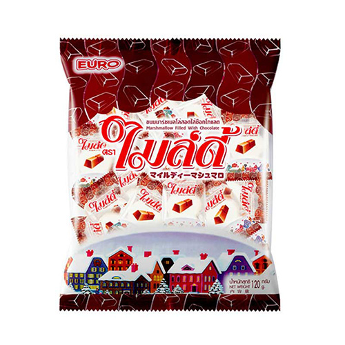 เติมความสุข ความสดชื่นให้ชีวิตระหว่างวัน ยูโร่ ไมล์ดี้ ขนมมาร์ชเมลโล่สอดไส้ช็อกโกแลต ที่จะทำให้ท้องที่กำลังหิว อิ่มได้ในพริบตา เพราะความหวานของไส้ช็อกโกแลต จะให้น้ำตาลตามที่ร่างกายต้องการพอดี ยูโร่ ไมล์ดี้ ขนมมาร์ชเมลโล่ถุงนี้จึงเหมาะมากที่จะพกพาไปโรงเรียน ไปเที่ยว มีไว้บนโต๊ะทำงาน หรือเป็นของว่างระหว่างเดินทาง หากหิวแล้วคิดถึงขนม ที่ให้ความสดชื่นและอิ่มทอง ยูโร่ ไมล์ดี้ ขนมมาร์ชเมลโล่สอดไส้ช็อกโกแลต เป็นขนมที่ใช่ถูกใจจริง ๆ